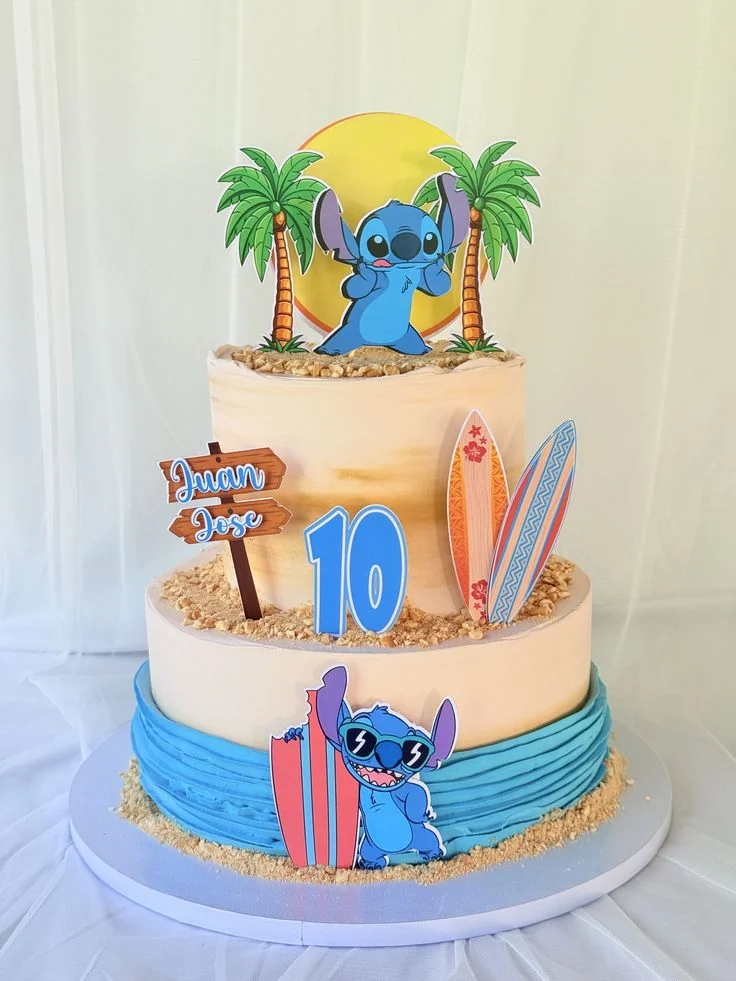 Las tortas de Stitch no solo son un postre: son el centro de atención de la fiesta. Cada diseño refleja la personalidad alegre y traviesa del personaje, convirtiendo tu celebración en una experiencia única, dulce y mágica. 🌺💫