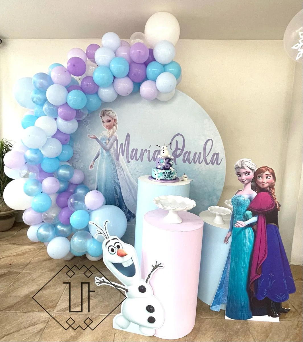 Perfecta para niñas que aman a Elsa, Anna y Olaf, esta temática transforma cualquier espacio en un escenario encantado lleno de brillo, color y fantasía.