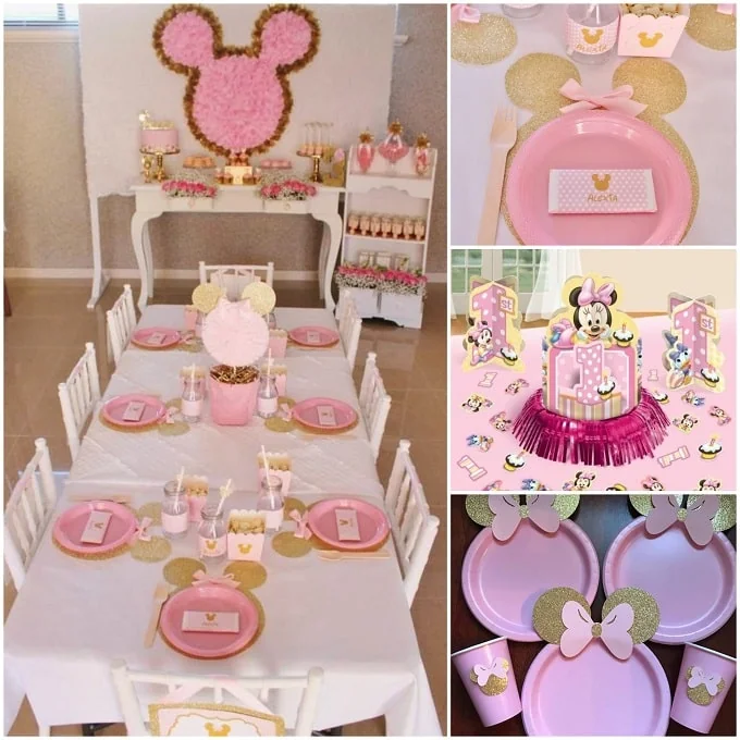 Cada rincón puede llenarse del estilo inconfundible de Minnie Mouse: centros de mesa, guirnaldas, tortas decoradas y pancartas personalizadas que harán sonreír a todos los invitados.