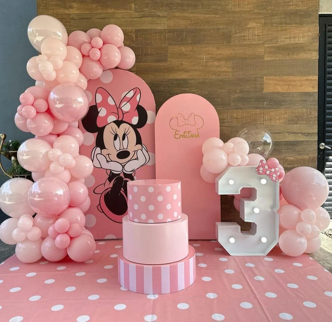 La decoración de Minnie es sinónimo de ternura, elegancia y alegría. 🌸 Perfecta para niñas pequeñas que aman los lazos, los colores suaves y la magia de Disney, esta temática transforma cualquier celebración en un cumpleaños lleno de encanto.