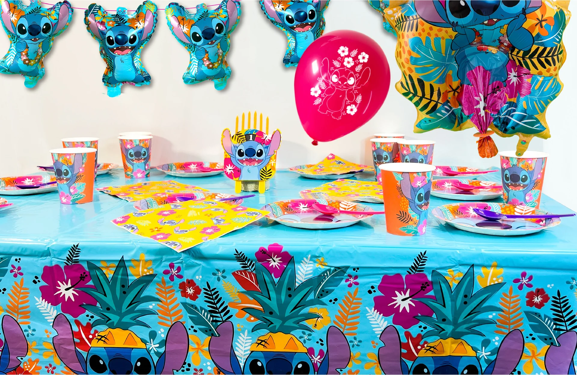 Si quieres un estilo más tropical, puedes optar por una decoración Lilo y Stitch para cumpleaños, con flores de hibisco, hojas de palma, piñas y mucho color. Las decoraciones de Stitch para cumpleaños son ideales tanto para interiores como para celebraciones al aire libre, creando un ambiente lleno de alegría y recuerdos inolvidables.